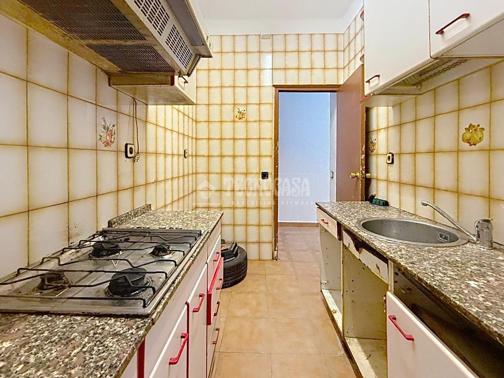 La cocina es independiente y cuenta con salida a una práctica galería que aporta ventilación natural. El baño, equipado con bañera, completa esta vivienda que necesita una reforma integral, lo que permite adaptar cada rincón a tus gustos y necesidades.