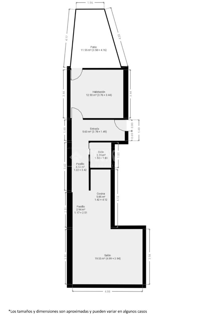 Actualmente dispone de una habitación doble con salida a un amplio patio interior cubierto, baño completo y una zona de día espaciosa con salón comedor y cocina abierta.