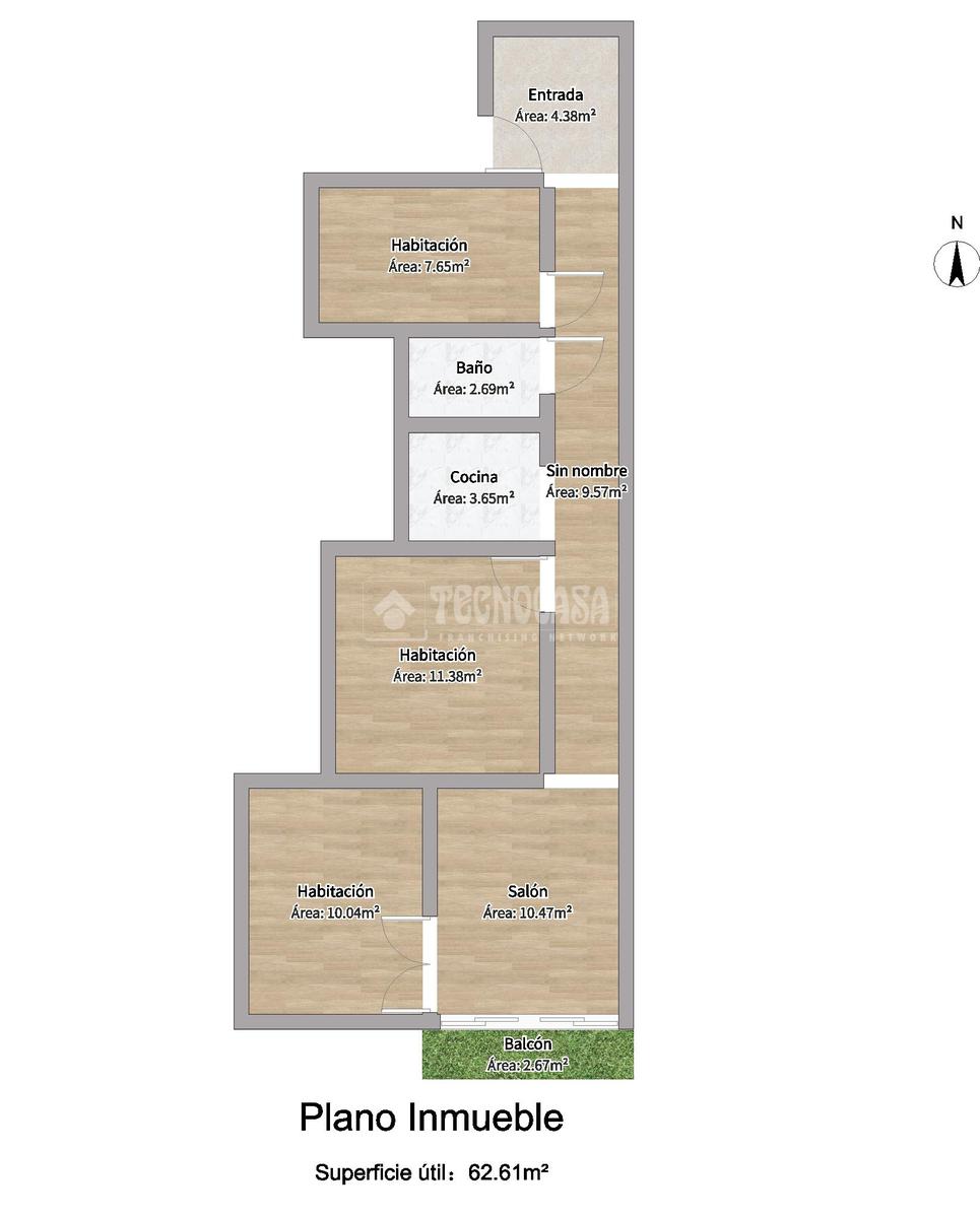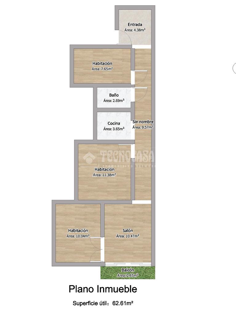 La vivienda dispone de 63 m², actualmente distribuidos en 3 habitaciones, cocina independiente, salón comedor y balcón con salida a un amplio patio de manzana, lo que garantiza muy buena luminosidad y tranquilidad. La orientación suroeste permite disfrutar de sol durante gran parte del día.