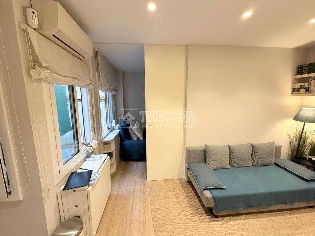 Dispone de un dormitorio doble, un baño completo con plato de ducha y un salón exterior a patio interior con orientación noroeste, lo que aporta buena luz natural y tranquilidad al estar alejado del ruido de la calle.